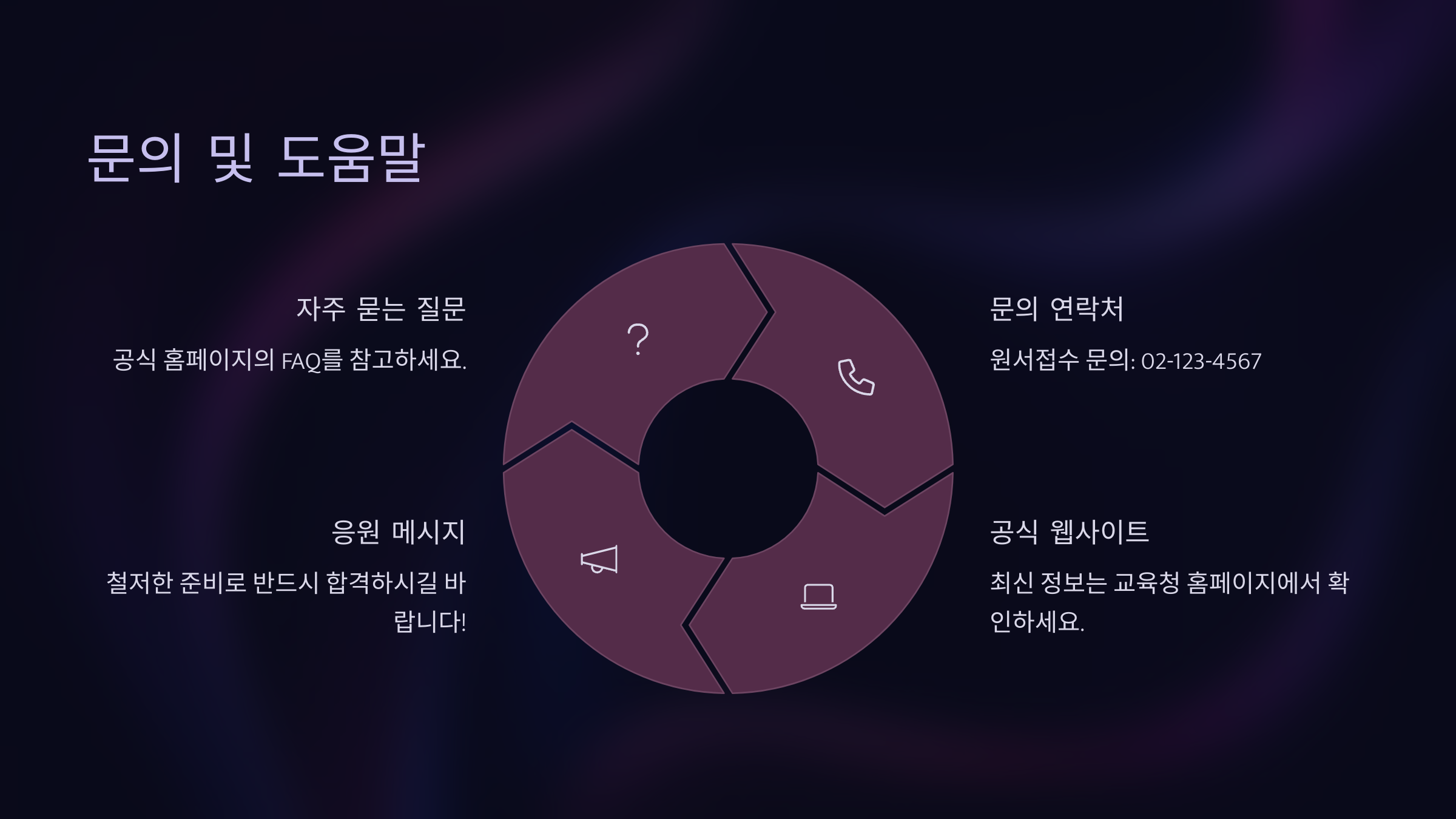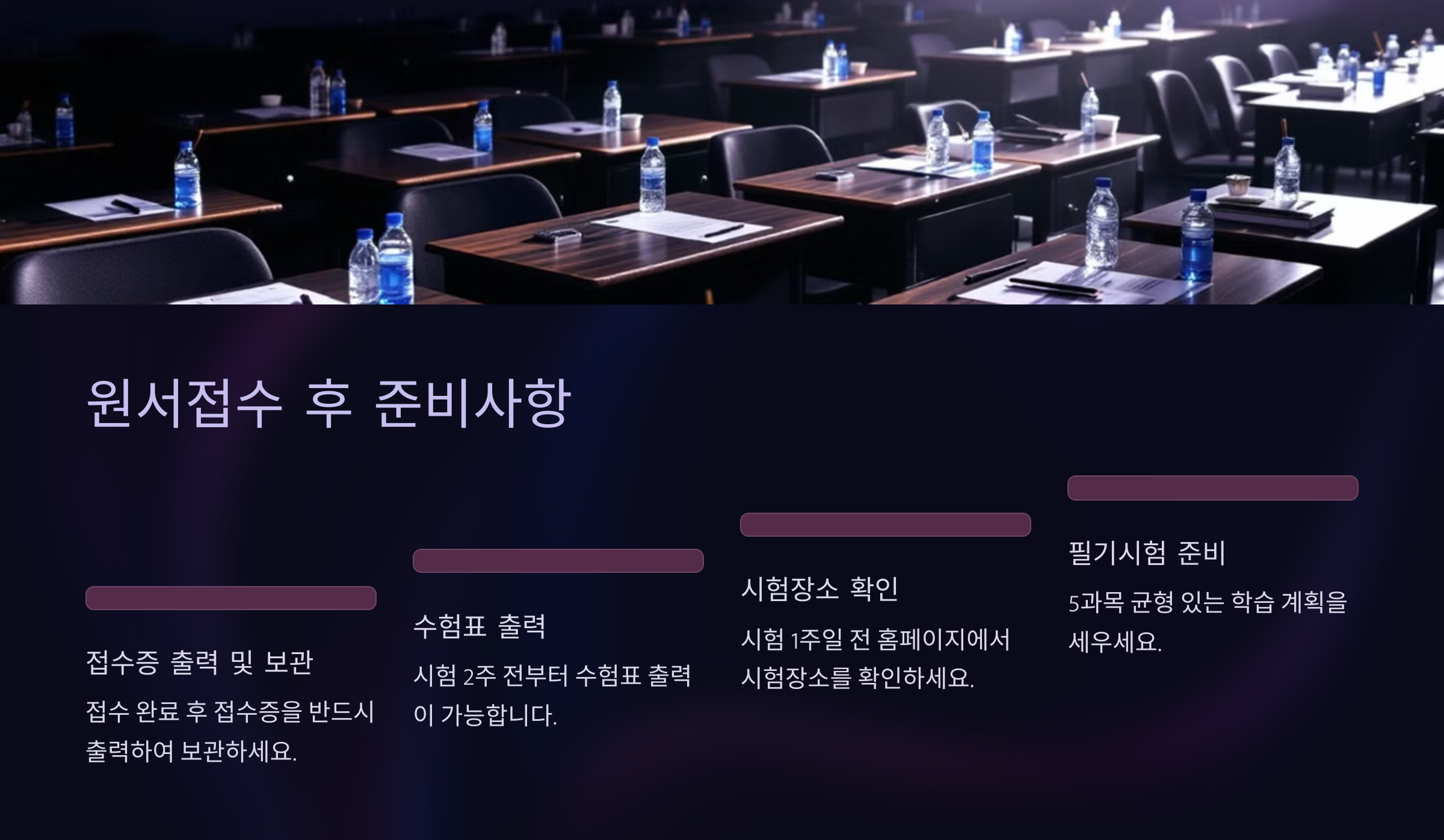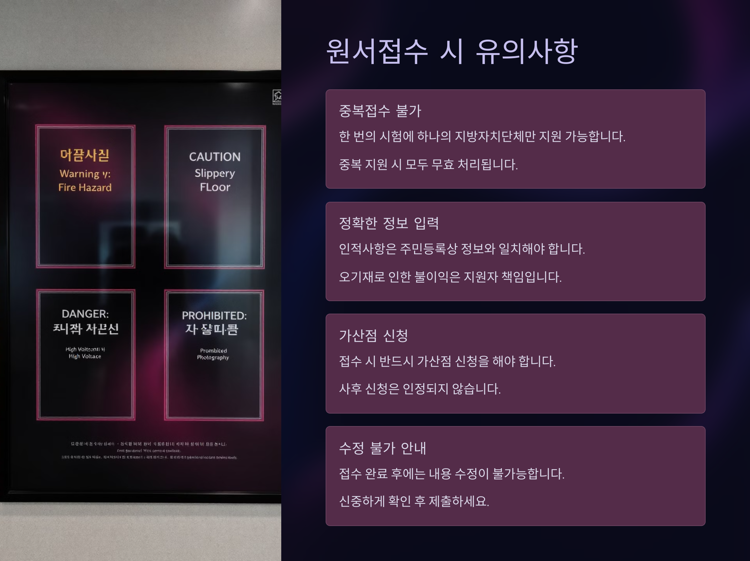 새로운 도전을 시작하신 만큼, 준비 과정에서 궁금한 점이 많으실 거예요. 차근차근 준비하시면 분명 좋은 결과가 있을 것입니다. 원서접수부터 시험 준비까지, 하나하나 꼼꼼히 챙기시길 바라며, 응원합니다!